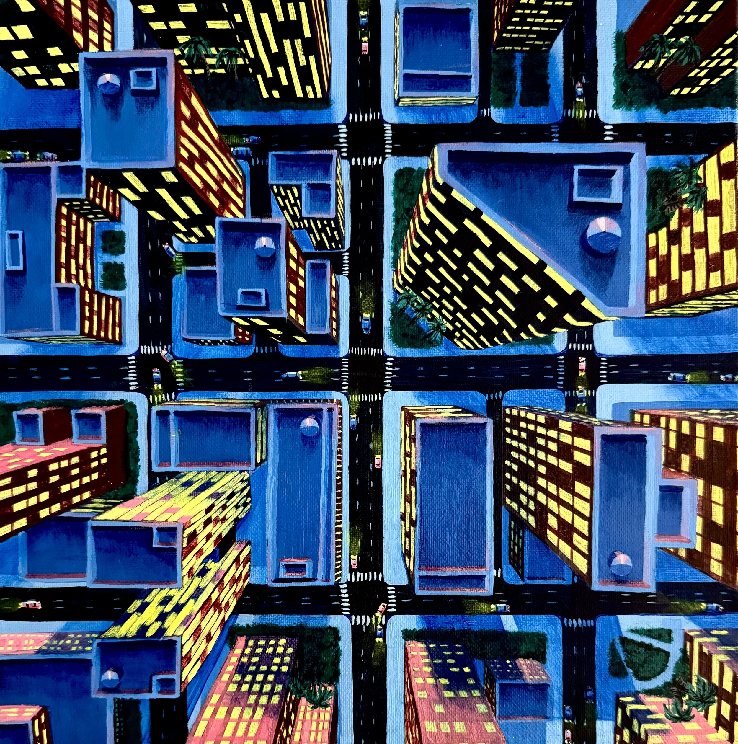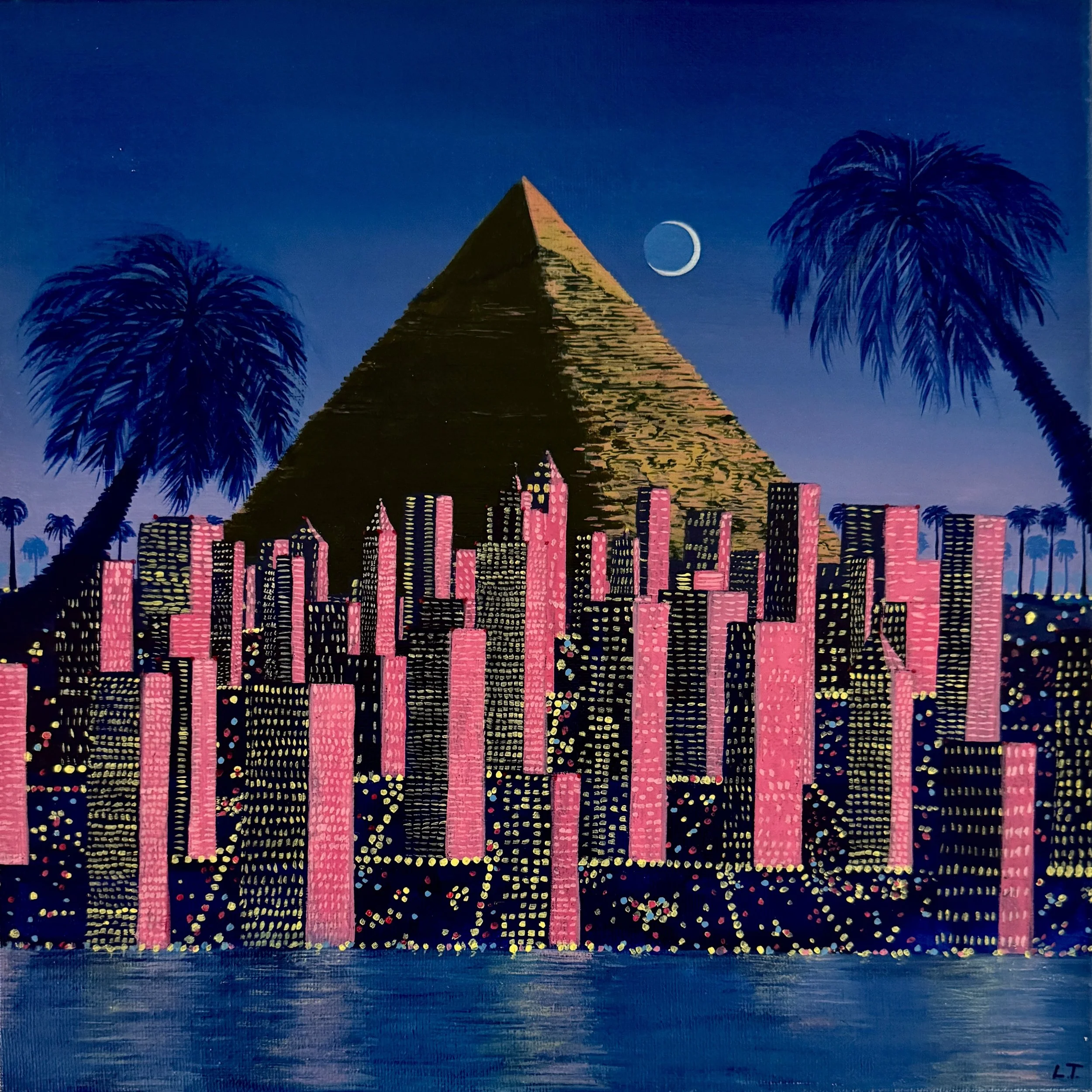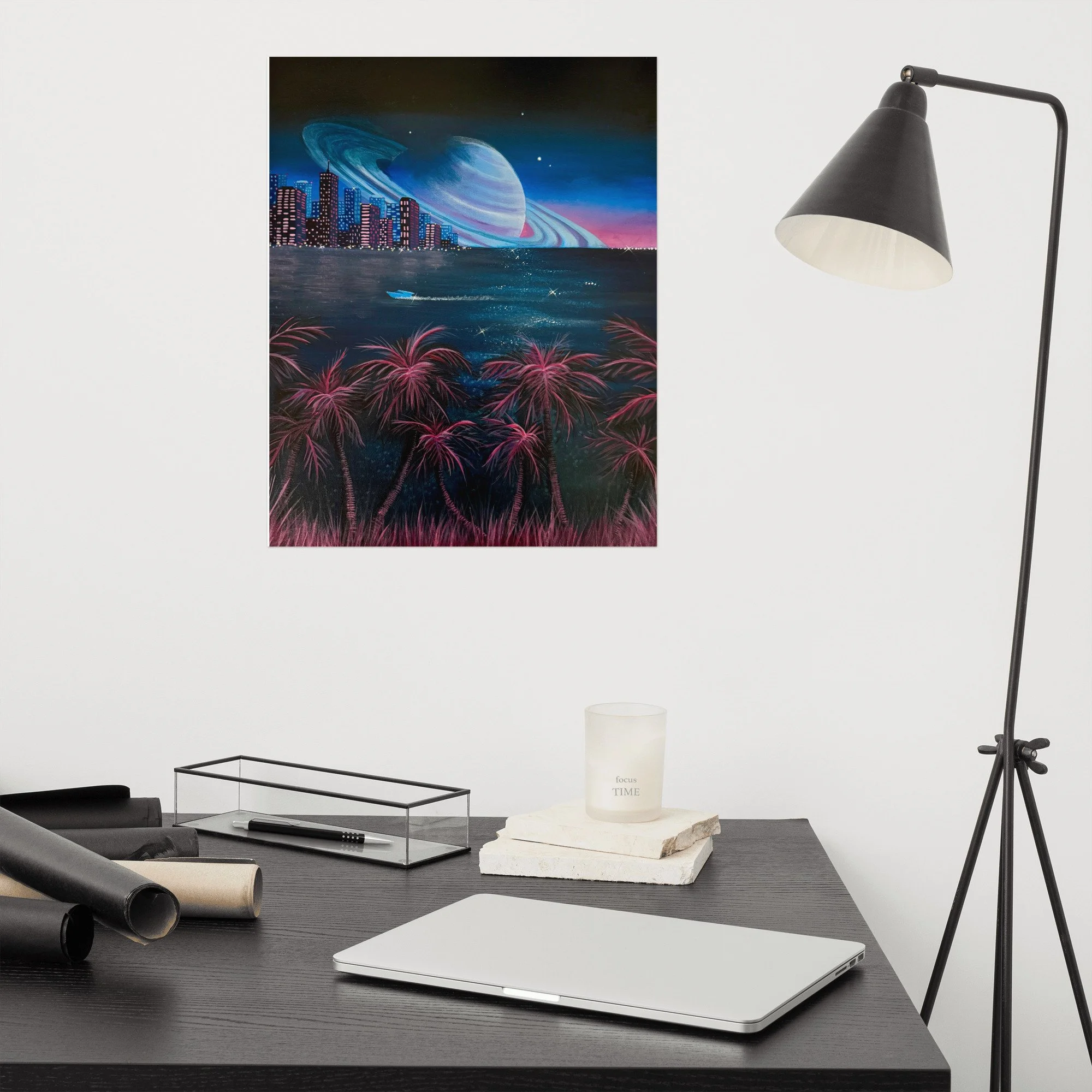 David Statue City Vaporwave Art Print Top Down City Vaporwave Art Print Pyramid City Vaporwave Art Print Saturn City Vaporwave Art Print